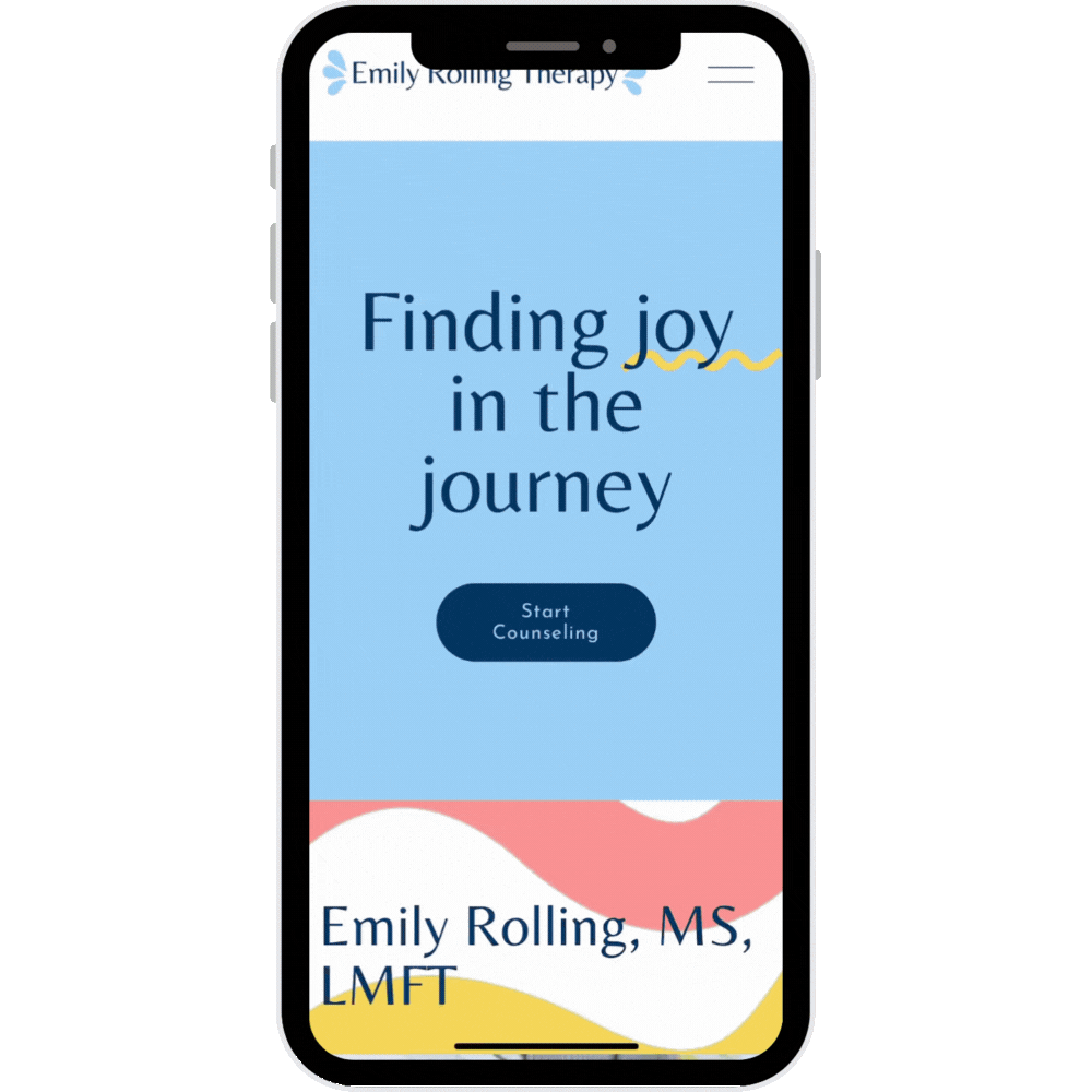 We discussed her therapy style and discovered that the common denominator when working with all three demographics is playfulness. From there, we crafted a brand kit and website that promotes Emily’s lighthearted nature that applies to all clients, no matter their age.