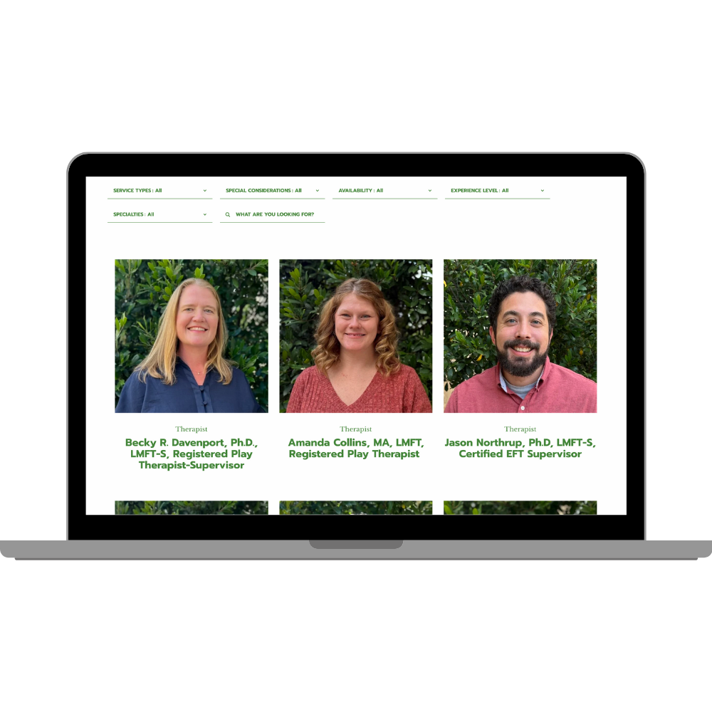 Working with both the practice owner and Office Manager, we collaborated on a design that reflected the grounded root theme found in their logo and a layout that emphasized the practice’s unique strengths. A highlight of this project is the custom-coded filtering tool on the “Our Therapists” page, which allows potential clients to find the perfect clinician to meet their needs.